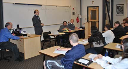 “A Conversation with Truman and Einstein” offered this opportunity on September 11, 2013 at the Swedish Cultural Center in Seattle. A facilitated discussion was led by attorney John Rapp and Professor Tayyab Mahmud (Director, Center for Global Justice, Seattle University). In attendance were audience members whose experience of the play inspired a desire for further conversation, some who had not yet seen the play but wanted to talk about how the American government arrives at important policy – and even a couple of people whose scientist parents had been involved in secret government work during the Second World War. President Truman and Professor Einstein participated in the discussion in the person of Mike King and Arne Zaslove (who had portrayed the characters in the staged readings of the play).